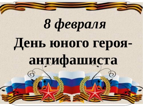 8 февраля – День юного героя-антифашиста, который отмечается в мире с 1964 года. К этому памятному дню для ребят начальных классов, был проведен классный час «Пионеры – герои». Ребятам рассказали об истории возникновения этой памятной даты, которая установлена совсем не случайно: в честь погибших участников антифашистских демонстраций – французского школьника Даниэля Фери (1962) и иракского мальчика Фадыла Джамаля (1963). Дети услышали трагическую историю жизни двух мальчиков, разных национальностей, но делающих одно общее дело. Все они погибли 8 февраля, только в разные годы.