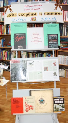 В Центральной библиотеке в Читальном зале в честь памятной даты — 22 июня — открыта книжно-иллюстративная выставка «Мы скорбим и помним».