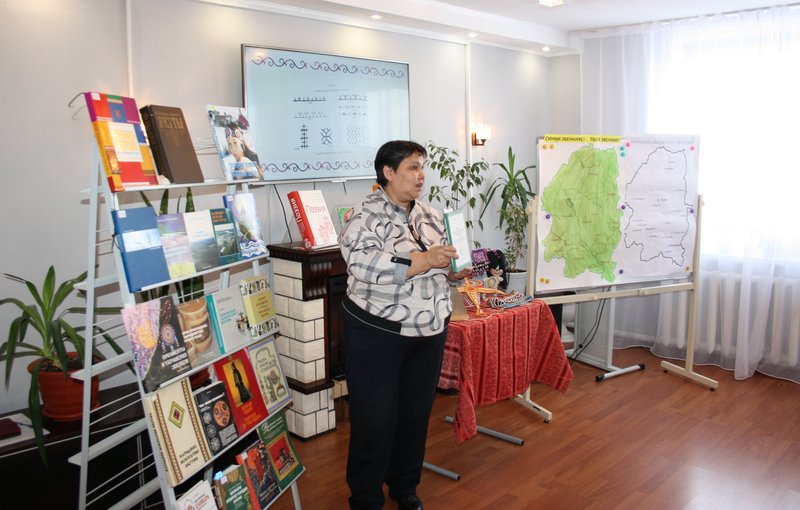 Библиотекарь Горбунова Е.А. проникновенно прочитала стихотворение Николая Оёгира «Кумалановы узоры», добавив мероприятию особую атмосферу.