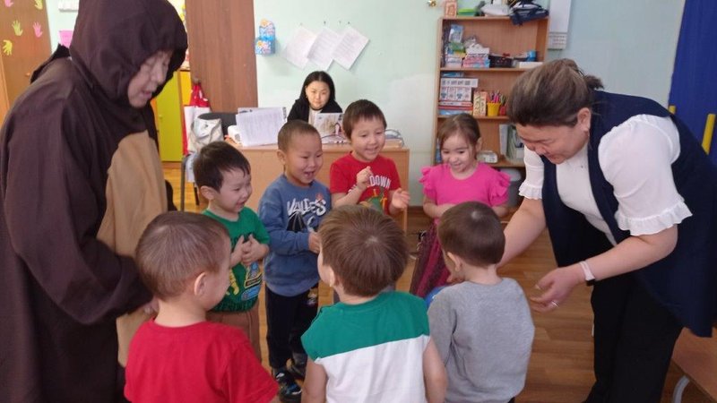 Под веселую песню «Любочка» дети, словно сказочный паровозик, отправились в увлекательное путешествие по стране Игрушек. Их проводником стала воспитатель Лариса Константиновна, а библиотекарь Ирина Иннокентьевна провела познавательный обзор у книжной выставки, посвященной детству и первым книжкам. Даже воспитатели с удовольствием делились воспоминаниями о своих любимых произведениях Агнии Барто, доказывая, что ее стихи остаются актуальными и любимыми в любом возрасте.