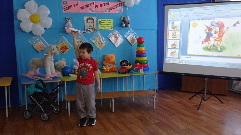 Во время прочтения стихотворения «Мишка», перед гостями мероприятия предстал настоящий плюшевый мишка (в роли которого выступила Диана Спиридоновна), и все дети вместе с ним играли в музыкальную игру «Кто здесь топал, кто здесь хлопал». Зайка, которого изображала Ульяна Владимировна, тоже не остался без внимания. После того как было зачитано стихотворение «Мячик», дети с азартом играли в «Передай мяч», а после стихотворения «Бычок» старались пройти по дощечке, проявляя ловкость и координацию. Завершилось путешествие прочтением стихотворения «Самолет» и веселой игрой «Приручим облачко».