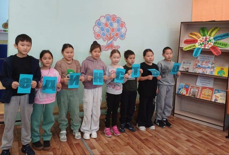 В библиотеке-филиале п. Чиринда разделившись на две команды – «Богатыри» и «Добры молодцы», участвовали в весёлых и познавательных играх. В игре «Правильное слово» дети складывали из букв слово «Единство», а в «Музыкальной игре» помогали гимну России обрести полноту, вставляя пропущенные слова и дружно исполняя первый куплет и припев. Старшие ребята проявили смекалку, расшифровывая народные пословицы, а младшие в игре «Дружба» с удовольствием наряжали кукол в национальные костюмы народов нашей страны. Своё единство ребята продемонстрировали в конкурсе «Остров единства», где всей командой, вместе с учителями, смогли уместиться на одном обруче. А чтобы построить крепкую «крепость», состязались в ловкости и сплочённости. Обе команды показали себя очень ловкими и дружными.