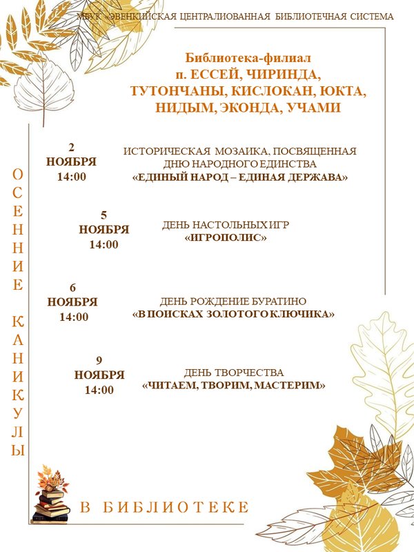 ОСЕННИЕ КАНИКУЛЫ В БИБЛИОТЕКАХ ЭВЕНКИЙСКОЙ ЦБС!
