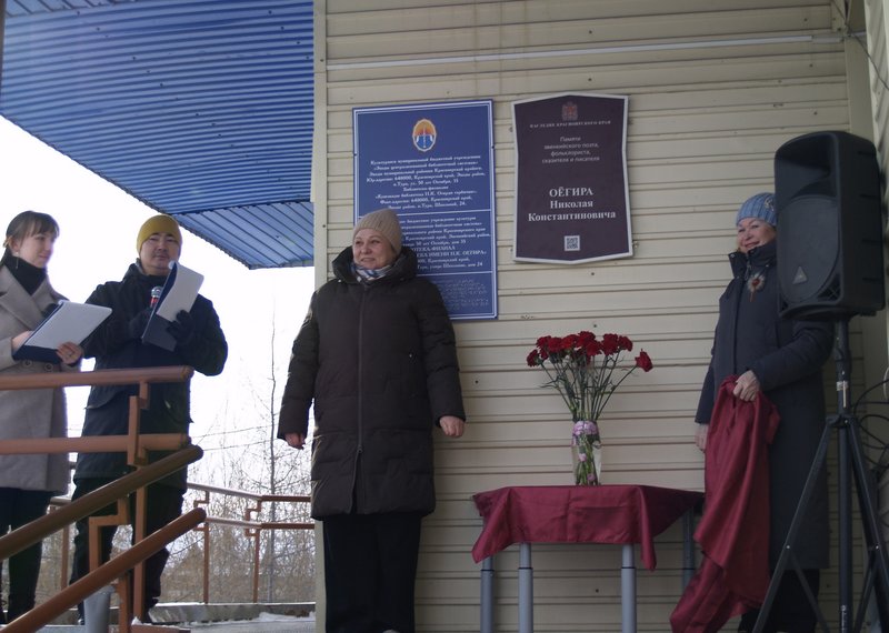 Право открыть мемориальную доску было предоставлено главному специалисту Управления культуры Администрации ЭМР Нине Владимировне Исенгалиевой и заведующему Детской библиотекой им. Н.К. Оёгира Светлане Викторовне Пировой.