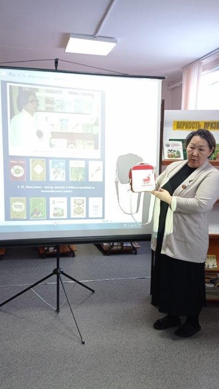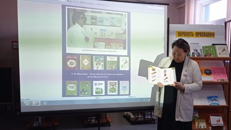 Для гостей встречи библиотекарь Ирина Иннокентьевна Комбагир представила презентацию о жизненном пути З.Н. Пикуновой, творческом наследии и, что особенно важно, о её неоценимом вкладе в дело сохранения и развития эвенкийского языка.