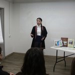 Библиотекарь Мария Шамова поделилась своим опытом участия в государственных грантовых проектах Агентства по развитию северных территорий и поддержке коренных малочисленных народов Красноярского края и рассказала о реализованном в 2023 году грантовом проекте – краеведческом лото об Эвенкии «Там, где не ходят поезда…». Ребята с большим интересом и энтузиазмом поиграли в краеведческое лото, погрузившись в мир знаний об Эвенкии и получив массу положительных эмоций. Восторг молодёжи был очевиден!