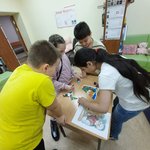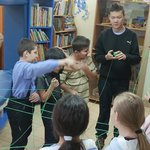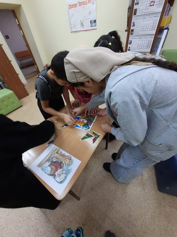 5 ноября продолжились осенние каникулы настольной игрой «Сказочный алфавит», которая объединила в себе элементы традиционной настольной игры и литературной викторины. Останавливаясь на секторе с какой-либо буквой, ребята должны были правильно ответить на заданный вопрос, используя буквы на клетках как подсказки, и только после этого двигаться дальше. Разбившись на команды, дети наперебой отгадывали сказочных персонажей.